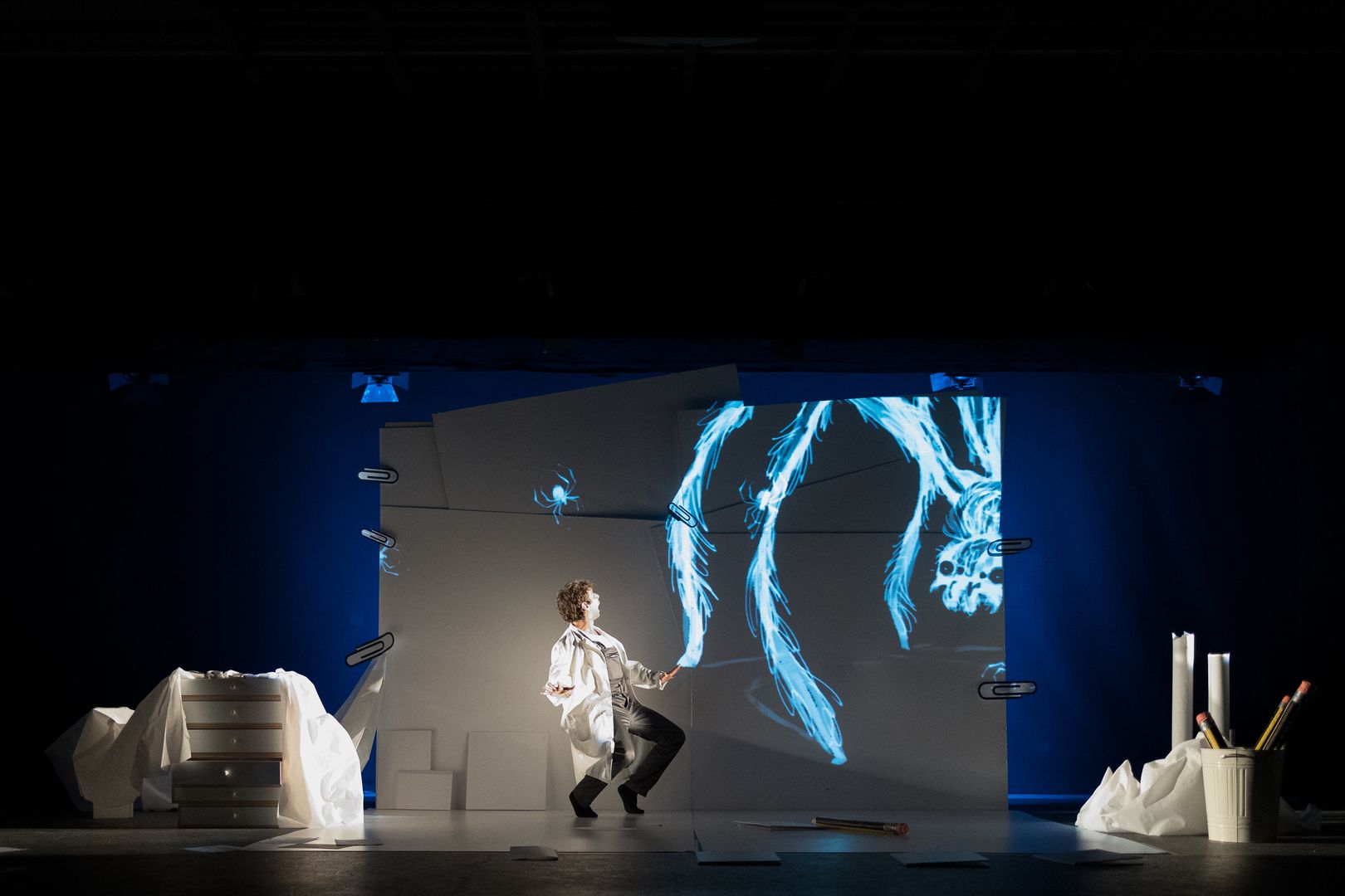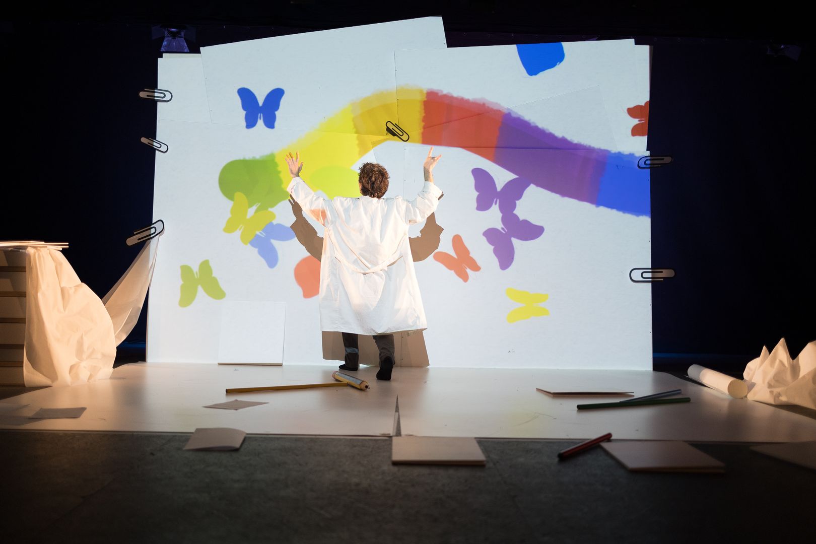 Questa è una storia fantastica e comincia così: C’era una volta… niente, ma proprio niente. Solo una pagina bianca. Un grande foglio vuoto! Ma un bel giorno arrivarono i Disegnatori di Tutte le Cose e grazie alla loro immaginazione e alla loro fantasia iniziarono a creare. E crearono proprio tutto: i mari, le montagne, gli animali, gli alberi. Ma in particolare c’erano due Disegnatori che si erano messi in testa di creare gli insetti, con pezzi di carta, luci, fili, fogli, matite e tanta, tanta voglia di giocare. Inventarono insetti striscianti, volanti, pungenti, insetti neri, colorati… insetti fantastici, insetti folli. Pensate se nel mondo non esistessero! E un bel giorno, quasi senza accorgersene, arrivò… una buona idea. Sembrava una follia, e invece… era una Farfollia.
