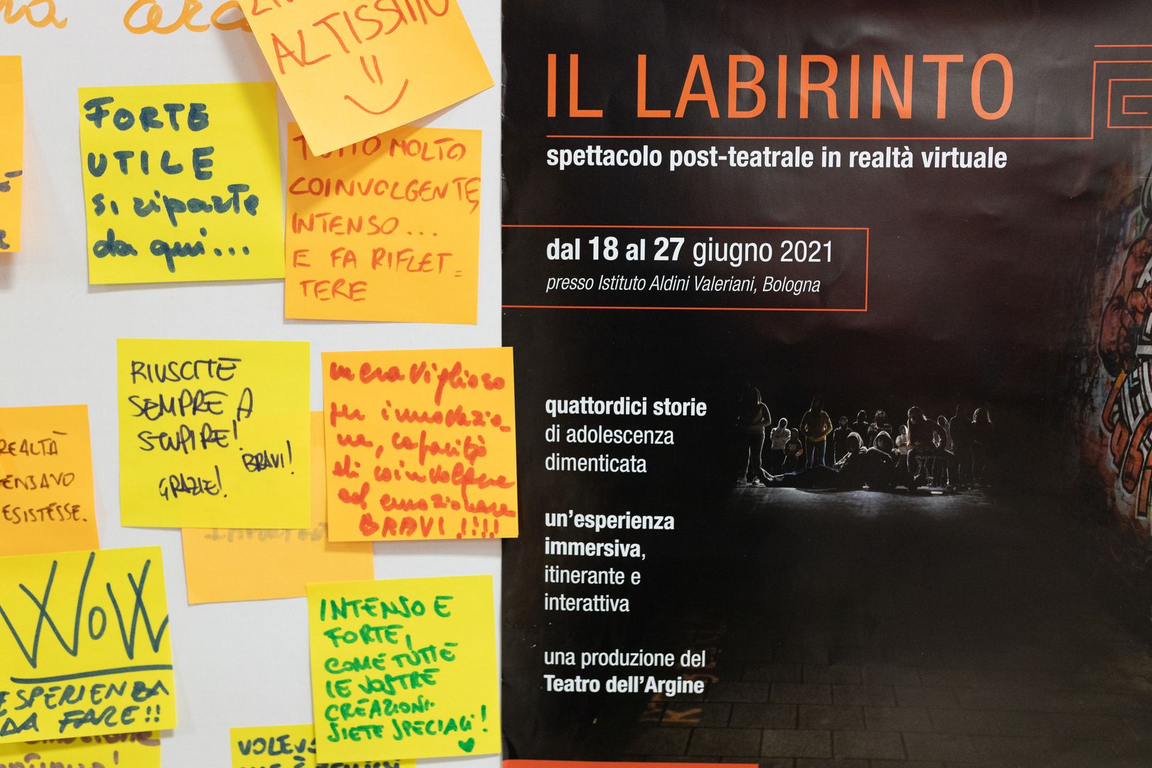 Il Labirinto è uno spettacolo post-teatrale in realtà virtuale, innovativo nel linguaggio e nelle modalità di fruizione, in cui ogni spettatore sarà dotato di un visore, uno speciale dispositivo che proietta chi lo indossa in uno scenario così realistico da sembrare vero. Da quel momento, si troverà immerso in una realtà virtuale dove sarà libero di scegliere come muoversi e come procedere.